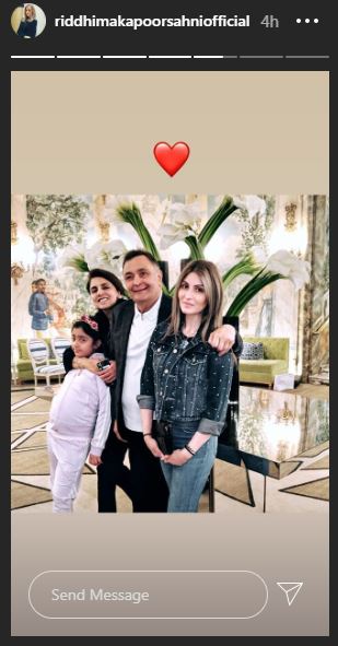 On Rishi ji's one-month death anniversary, his daughter, Riddhima Kapoor Sahni had taken to her Instagram stories to pay tribute and remember her late father. She had shared a happy family picture of herself along with her father, Rishi Kapoor, her mother, Neetu Kapoor, her husband, Bharat Sahni and her little daughter, Samara Sahni. The picture had reminded us of the good old times when happiness had prevailed around us, and we had the vicinity of our loved ones. Riddhima had also written a sweet message atop the beautiful picture, which could be read as "Say not in grief: 'He is no more' but live in thankfulness that he was- Hebrew Proverb. One month today we miss you." Take a look at the unseen picture here. (Also Read: Irrfan Khan's Son, Babil Khan Looks Exactly Like His Late Father's Younger Version, Shares The Proof)