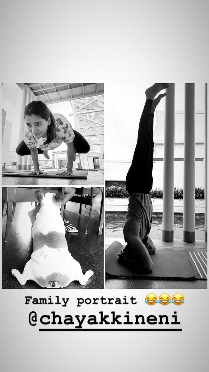 As we all know, the family who does yoga together stays together! This might be a little low on the rhyme scheme, but you got the gist, right? This is what Samantha had tried to convey some days ago. On June 26, 2020, Samantha had shared a collage as her Instagram story, wherein we could see her and her hubby, Naga Chaitanya doing yoga but it was their furbaby's appearance that had made it super adorable. She had captioned the monochrome picture as "Family portrait. @chayakkineni".