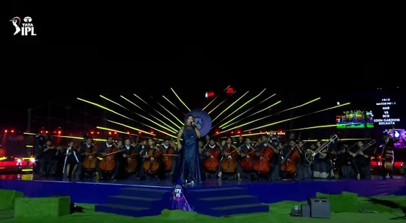 Coming to her performance, the singer, Shreya Ghoshal, is the queen of live performances. She beautifully sang Rang De Basanti from the film, Rang De Basanti. A.R. Rahman, Daler Mehndi and KS Chithra originally voiced the song. Shreya gave the song a smooth touch, which was further levelled up by the live band present in the stadium.