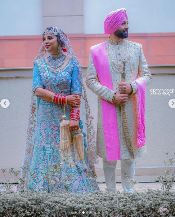 For an Indian bride, red is the colour that is considered a must wear on her wedding day, but a Sikh bride ditched it and donned a gorgeous pastel blue 'lehenga'. Check it out!