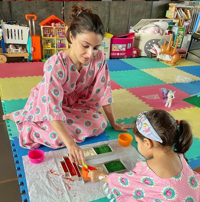 A few hours ago, Soha Ali Khan took to her IG handle and shared a cute picture of her little doll, Inaaya, who can be seen engrossed in making her dollhouse. Dressed in a white dress with pink tassels hanging from the back, Inaaya looked pretty as a doll herself. In the picture, Inaaya arranging her dolls in front of the dollhouse, and we can already see a mini Soha inside her with her management skills.