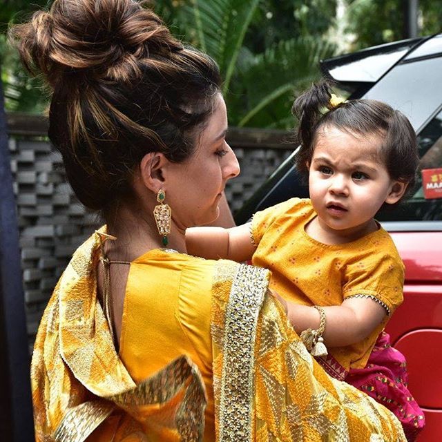Just recently we brought to you the news of how Karanvir Bohra and Teejay Sidhu’s adorable twins, Bella and Vienna are making the most of the puja. And now, Soha Ali Khan and Kunal Kemmu arrived at Arpita Khan Sharma’s house for the Ganesh Chaturthi celebrations. No points for guessing who accompanied this Bollywood’s power couple! Yes, their little angel, Inaaya Naumi Kemmu.