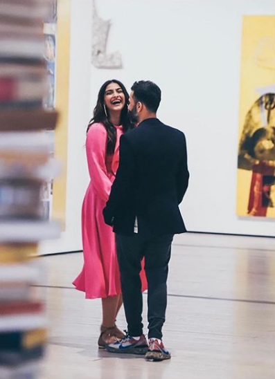 Sonam K Ahuja and Anand S Ahuja have always given the world out there some serious #CoupleGoals! The duo has shaped their #EverydayPhenomenal marriage quite beautifully and every picture that the duo posts about each other never fails to make us adore them. This reminds us to share with you all, a picture of Sonam and Anand wherein the latter is facing towards Sonam, with his back in front of the camera, while his wife, dressed in pink is all smiles for the camera! Take a look at the adorable snap here: