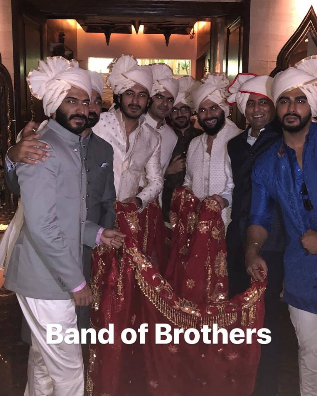 See how all of her handsome brothers look dapper in their sister’s wedding and what’s better than handsome boys tying pagdi on their heads! Some of the well-known faces in the picture is of Sonam’s little brother Harshvardhan Kapoor, cousins Arjun Kapoor and Mohit Marwah, among others. While the brothers are doing their best to ensure that their sister has full grandeur at her wedding, but what is even fun is the way all of them are enjoying to the fullest at Sonam’s wedding. (Recommended Read: Sonam Kapoor-Anand Ahuja Are Married, Here're The 1st Pics Of The Happy Couple After 'Anand Karaj')