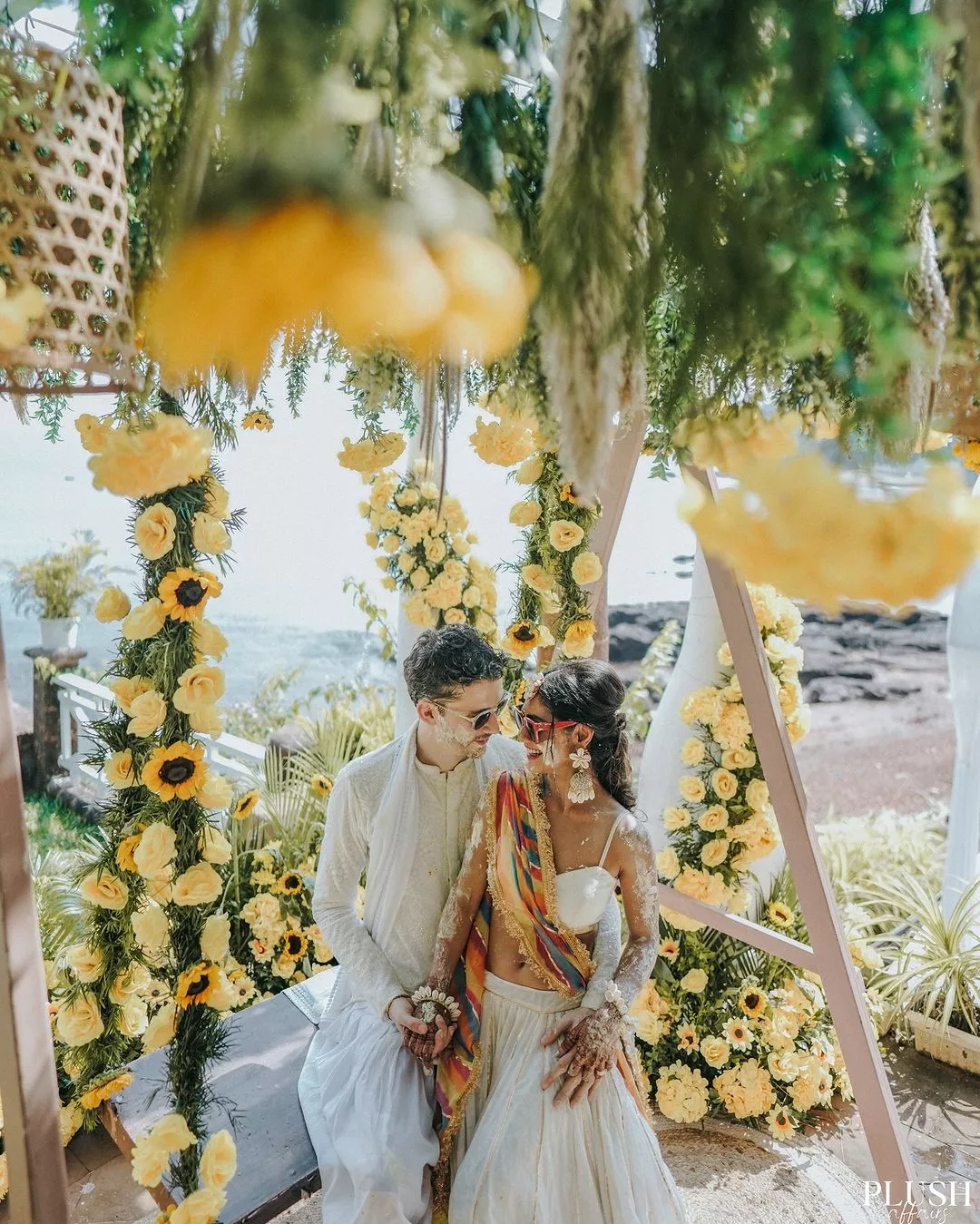 Another highlight of Sreejita's look was her seashell jewellery, which added a whimsical vibe to her overall look. She wore a cowrie maang teeka, a matching necklace, jhumkas, and bangles. On the other hand, Michael was dressed up in a white kurta and looked super handsome.