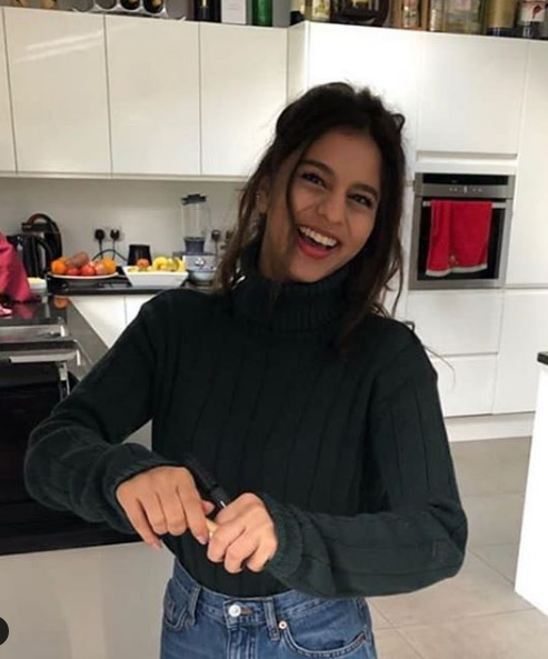Very recently, we came across an adorable picture of Suhana Khan, all smiles for the camera as she stood in a kitchen. Suhana had worn a black halter-neck, full-sleeved sweater, which she had tucked in her high-waist blue denim. Her hair was partially left loose and partially left open. While there are many such zillion pictures on her fan pages that made us want to add in here, but this simple picture of hers surely caught our fancy. Take a look:
