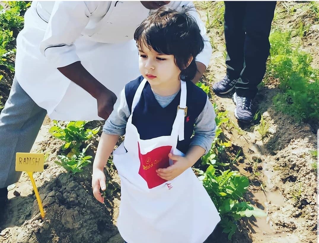 Kareena and Saif make sure to give Taimur good adventures while he is growing up. They make sure to take him out on vacations to play dates and whatnot. A few weeks ago, we had seen little Tim trying his hands-on gardening. We had gotten hold of adorable pictures and videos of Taimur, wherein we could see Taimur wearing a white apron and cutting leaves and grasses. Check it out below: