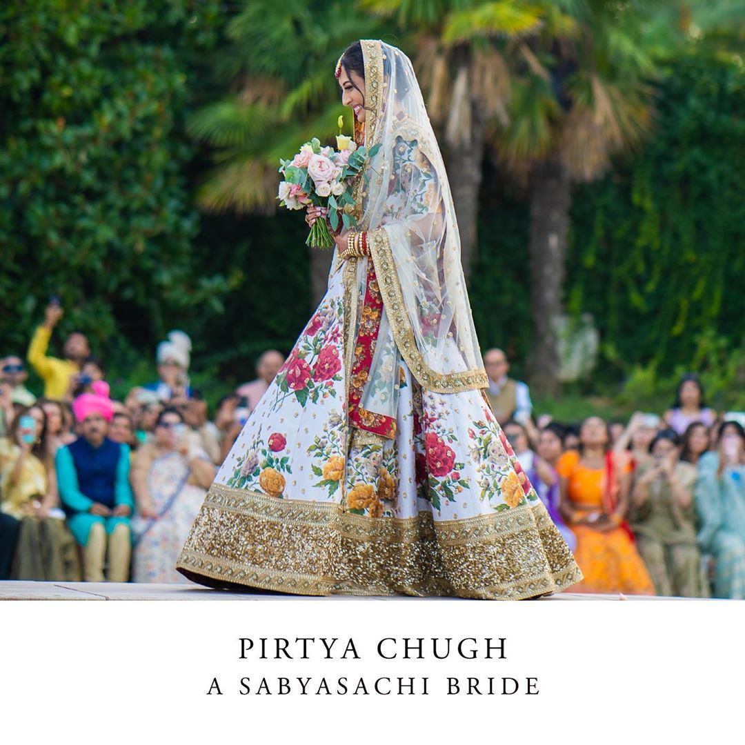 Every Indian bride has a long list of what all she wants in her dream ensemble and designer, Sabyasachi Mukherjee's name tops the list. Scroll down to see a bride, who opted for a floral lehenga!