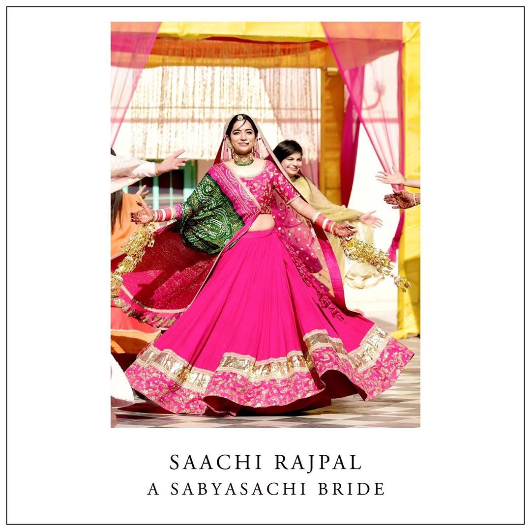 Recently, we spotted a Sabyasachi Mukherjee bride, who donned a rani pink lehenga with a unique dupatta!