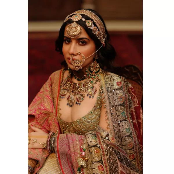 Uorfi, a while back, took to her Instagram handle to share a reel where she could be seen not wearing any weird dress but decked as a bride in a pomegranate-hued lehenga. Speaking of the lehenga, it had motifs inspired by archival brocade fragments and Mughal inlay work. Uorfi paired her dreamy lehenga with a crystal-encrusted blouse. The Bigg Boss OTT contestant wore oversized kundan buttis, a heavy golden choker necklace and teamed it up with another oversized necklace. She completed her look with an oversized maang teeka, matha patti, nath, heavy bangles and rings.