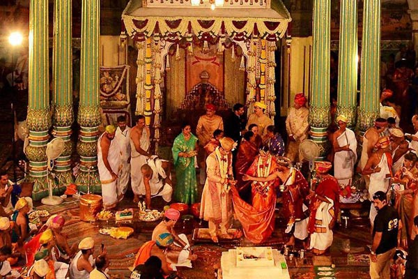 The royal marriage of Boston-educated, 24-year-old Yaduveer and 22-year-old princess Trishika Kumaritook took place in the main Durbar Hall of the palace in the auspicious Karkataka lagna. It was a completely traditional wedding and the wedding rituals lasted for two days. Kamashidevi, grandaunt of Yaduveer said: