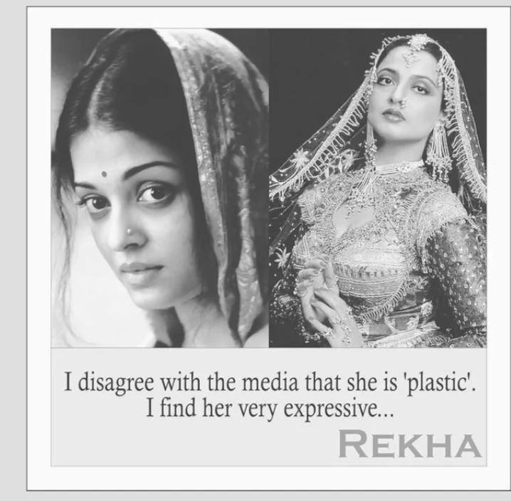 Once, in an interview, Rekha strongly reacted to Aishwarya Rai being tagged as plastic and said that she admired her a lot. She also mentioned that Aishwarya is the best and disagreed with the media that labelling the latter as 'plastic. She even mentioned that she would fight for Aishwarya like a tigress if she needed to. Rekha could be quoted as saying: