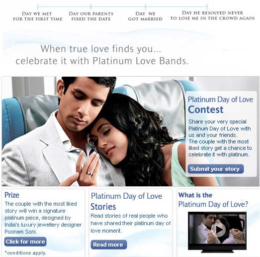 It could be a chaste speck on the cheek or the mere holding of hands that could in all earnest qualify as the most solemn expression of love. It does not have to be spectacular, the earth does not have to shift on its axis, though it may metaphorically for those who have discovered love in that one fleeting moment. What other way than to cherish those sweet memories by letting one twelfth of mankind know about it (the total number of Facebook members represent one twelfth of the total world population). If your ‘Platinum Day of Love” story is voted as the most romantic amongst all that are posted, you win bands of pure platinum.