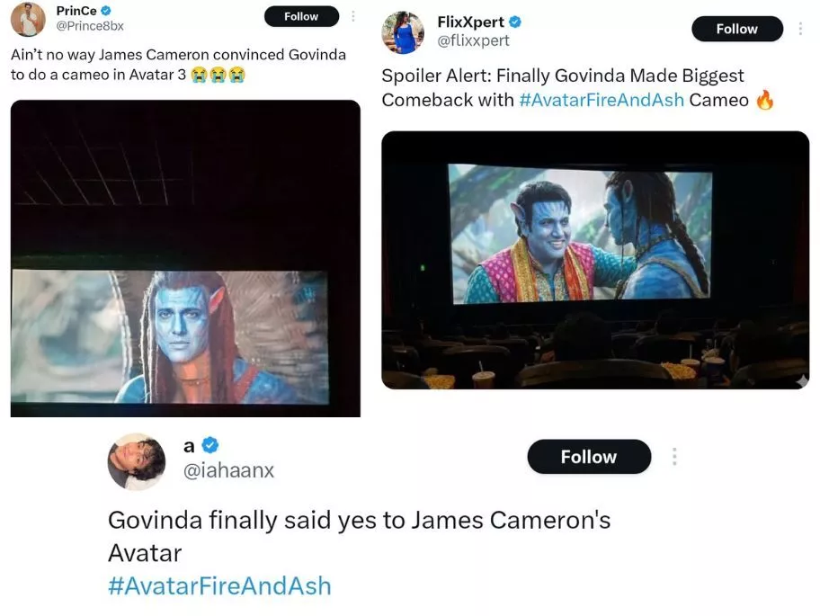 Many online users believed the photos of Govinda were real and that the actor had finally accepted James Cameron's offer. They expressed disbelief saying, "Ain't no way James Cameron convinced Govinda to do a cameo in Avatar 3." An X user wrote, "Spoiler Alert: Finally Govinda Made Biggest Comeback with #AvatarFireAndAsh Cameo." Another stated, "Govinda finally said yes to James Cameron's Avatar." The posts also racked up thousands of views and likes because the editing seemed believable at first glance. It once again shows how advanced AI has become, making it difficult to distinguish between real and fake.