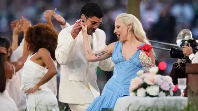 Recently, several reports claimed that the couple who were seen marrying on the stage actually said 'I Do' in real life, not just for performance. People confirmed that the bride and groom from Bad Bunny's performance actually got married. During the performance, the newlyweds were seen sharing a kiss before they parted, and a surprise appearance of Lady Gaga left the viewers baffled. She performed the song, Die With A Smile, while the newlyweds, whose names were not disclosed, were seen sitting at a corner of the stage and cutting a three-tier cake.
