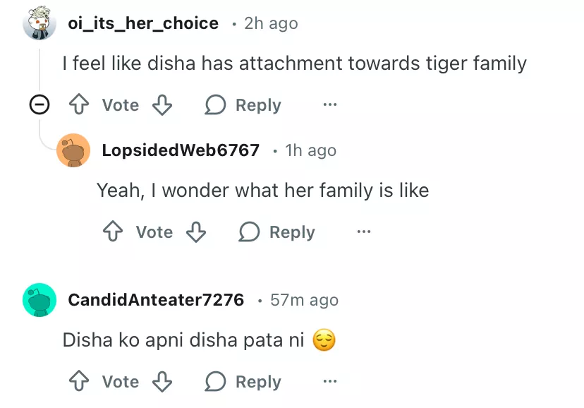 Soon netizens reacted to the photos. One user wrote, "Tiger and Disha should just get married." Another one commented, "I feel like disha has attachment towards tiger family." A third user wrote, "Disha ko apni disha pata ni." A fourth one penned, "So confused… I thought they broke up? Why does she hang around her ex’s family?"