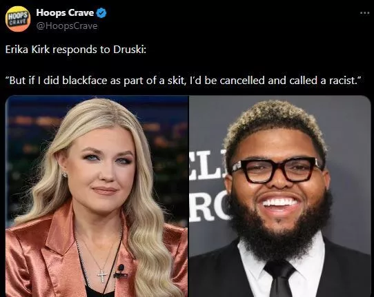 The fire was already burning when he dropped his recent sketch, which became a massive attention point. Well, the numbers speak. A post has been doing rounds on social media, which is being claimed to be from Erika Kirk. As per the post, Erika has made a comment about Druski's sketch, wherein she said that if she were to do something like that, she would be cancelled and would be called a 'racist'. To mention, this statement is only a fake one, and the truth is that Erika hasn't made any such comment about the current sketch that has been grabbing the attention. The statement was posted from a satirical page, and it was only a fake one.