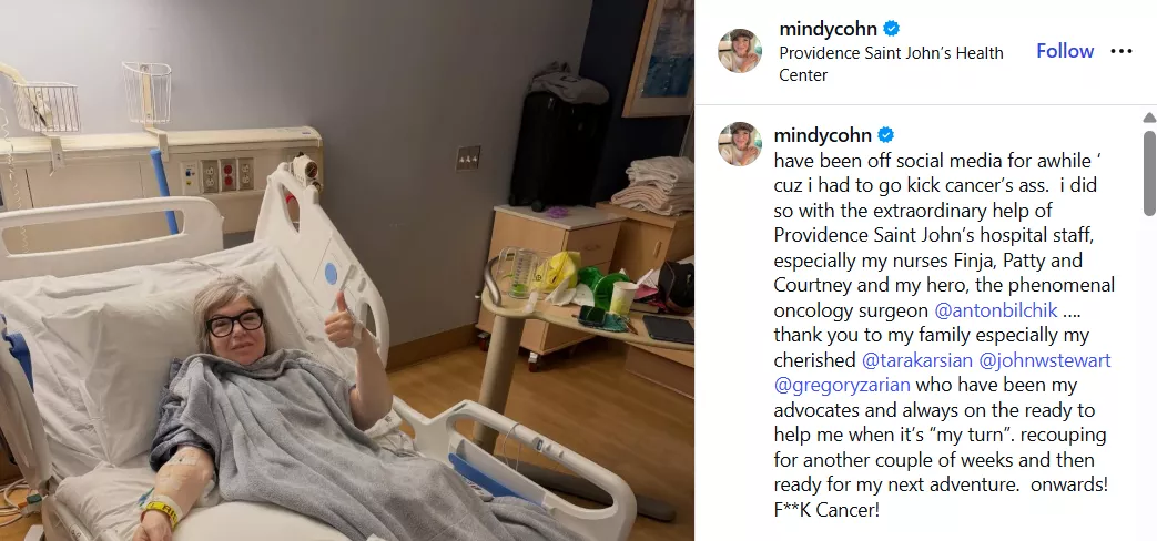 Mindy Cohen revealed that she had been away from social media because she was fighting the cruel disease that is cancer. The actress took to her Instagram account to show that, despite the news, she has remained in high spirits as she fights the battle again. She expressed her gratitude towards the medical help she has received at Providence Saint John's Hospital. The note could be read as saying: