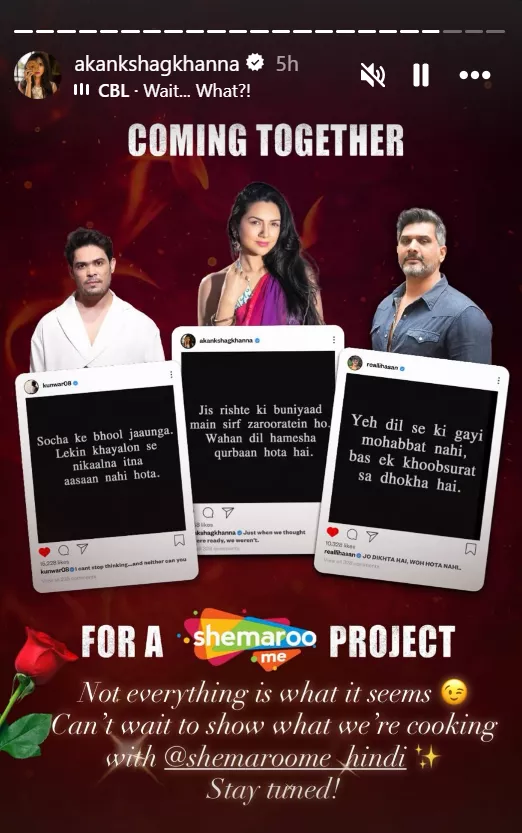It is interesting to note that the poster also had actor, Kunwar Amar and had cryptic lines such as, "Socha ki bhool jaunga. Lekin khyalo se nikalna etna asaan nai hota." Akanksha's dialogue was, "Jiss rishtein ki buniyaad maion sirf zarorratein hoh waha dil hamesha qurbaan hota hai." A part of the note also read, "Yeh dil se ki gayi mohabbat nahi, bass ek khubsurat sa dhoka hai." Akanksha, in her new Instagram Story, posted a while back, made it loud and clear that she and Gaurav are not heading for a divorce anytime in the distant future. What is shown on social media is not true in real life at times.