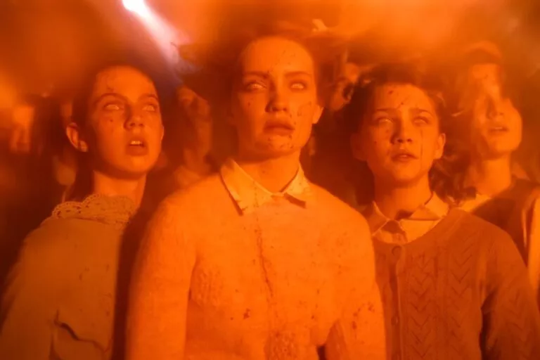 We also meet 'Ingrid Kersh' again, now a patient wearing a straitjacket at Juniper Hill. As the doctor puts on some calming music for her, the scene cuts to October 1988, when the next cycle of 'IT' begins and IT: Chapter One takes place. Bringing back Joan Gregson as older 'Mrs Kersh', she's busying herself with a painting, until it is interrupted by a screaming nurse. People are gathering by a doorway when we see that a female patient has hung herself. Her family is crouching on the floor, the crying father shaking off his daughter. The finale ends with Sophie Lillis, who played 'Beverly' in Chapter One, saying: