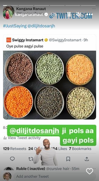 However, what has created controversy is the fact that Kangana Ranaut tagged popular Punjabi singer, Diljit Dosanjh in one of her posts. On March 21, 2023, Kangana took to her Instagram handle and posted a series of tweets in reference to the government taking strict actions against people, who are in support of Khalistan. In her first Instagram story, Kangana posted a screengrab of her tweet in which she quoted Swiggy’s post, tagged Diljit Dosanjh and wrote, "@diljitdosanjh ji pols aa gayi pols". The actress reportedly plays around the phrase, ‘Police aa gayi’ with her caption, as most people say it like this whenever they refer to police.