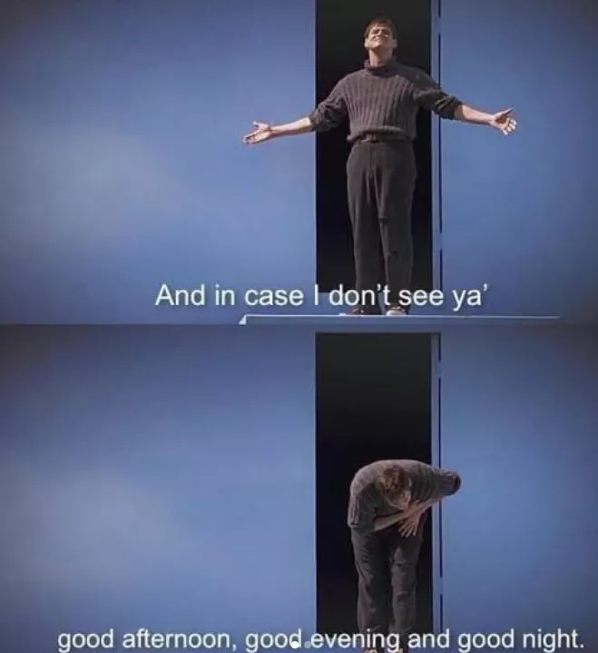 "And in case I don't see ya, good afternoon, good evening and good night."