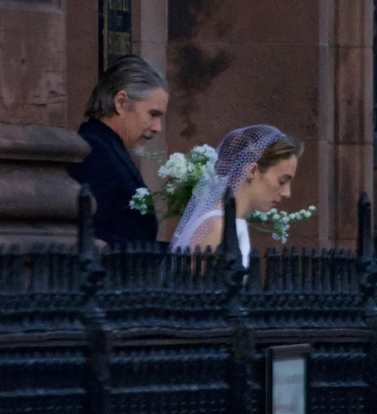 Well, the couple who started as friends collaborated on several projects, and now they are married. For the wedding, Maya Hawke donned a sheer white wedding gown, which she teamed with a veil and an oversized feathery winter coat. Her look was completed with a pair of white block heels, soothing makeup and the perfect hairdo.
