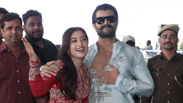 Rashmika, on the other hand, looked gorgeous as she was clad in a saree and gold jewels. Her glow was simply unmissable. Vijay and Rashmika were accompanied by the actor's brother, Anand Deverakonda. Well, this is the couple's second public appearance as husband and wife. After they got married, the couple was spotted at an airport. For their first public appearance, Vijay wore a printed co-ord set, while Rashmika looked the best in a red anarkali.