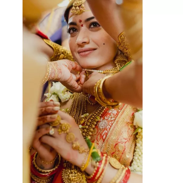It is interesting to note that the 'Rowdy' logo is not easily visible in Rashmika's mehendi. One had to look really carefully, which is why it seems special. This is because Indian bridal mehendi has always carried deep meaning, and Rashmika's mehendi had the perfect symbolic representation of Vijay. Her mehendi was simple and exuded a calm, regal vibe. It was nothing excessive, and she did not try to prove anything major via her mehendi. Rashmika's rich mehendi, paired with temple jewellery, created a wedding moment where the term' elegance' in itself was a complete understatement. It was comforting, spoke about the importance of Vijay in her life.
