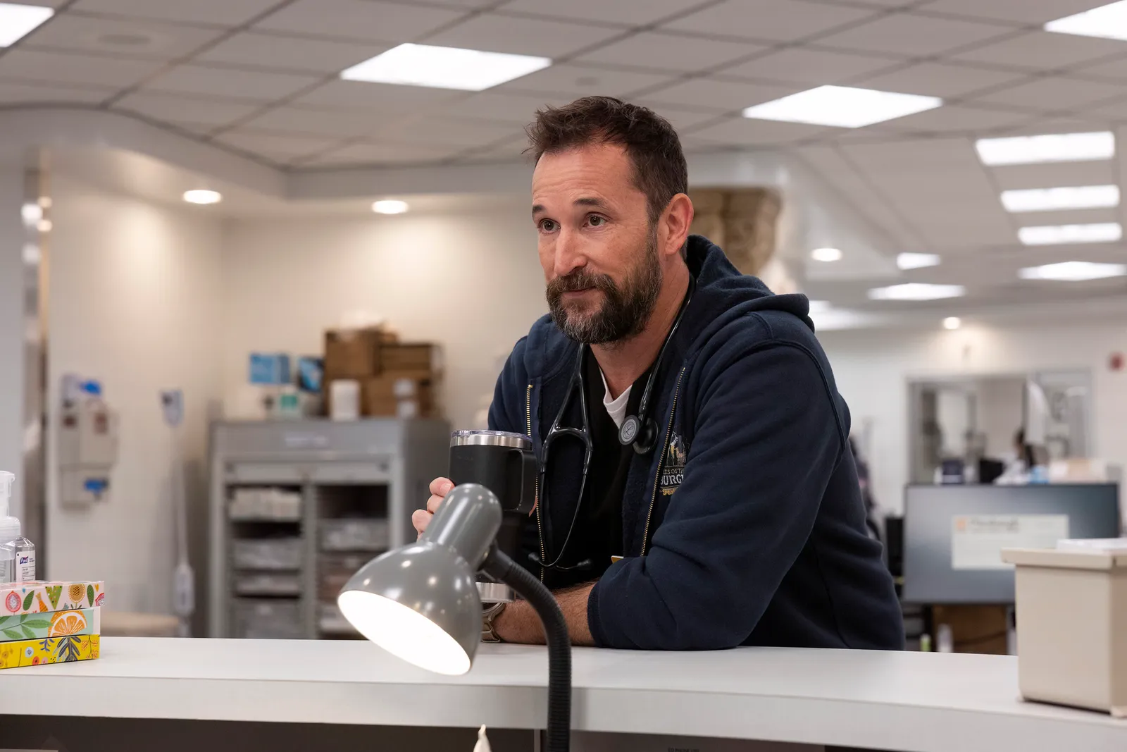 "Noah [Wyle] and I talked a lot about this scene between Abbot and Robby. And he mentioned that this being around 4 p.m., when that scene occurs, when Abbot says, 'Hey, if I don't see you, have fun on your trip,' it was kind of like a bell goes off for Robby that this is the beginning of my goodbyes. If my plan is maybe I'm not going to come back or I'm going to do something really self-destructive, this is the first one. And that starts an arc for Abbot that we kind of come back to later."