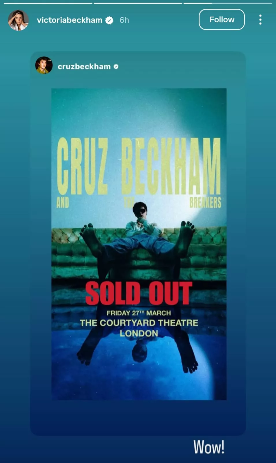 The poster shows that the tickets for Cruz's show are sold out, and on Instagram his mother, Victoria, shared her appreciation with a "Wow!" This depiction of Victoria's support amid the highly publicised rift with eldest son, Brooklyn, raised eyebrows. Not just Cruz; Victoria also gave a shoutout to her former Spice Girls bandmate, Emma Bunton, on Instagram that same day. Victoria shared a black-and-white throwback photo with Emma to celebrate the latter's 50th birthday. The caption could be read as, "Happy birthday @emmabunton. I love you so much!!" She also posted a vintage clip from the Say You'll Be There music video, captioning it, "Happy birthday Baby Kisses xxx."