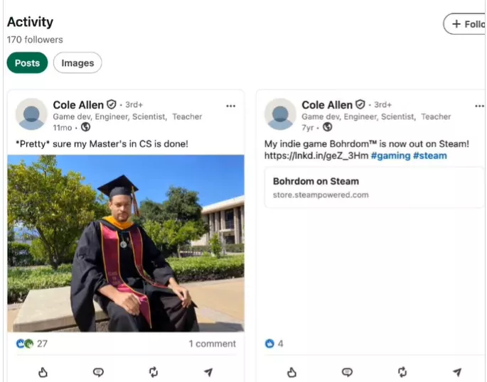 An HT report revealed that screenshots from Cole Tomas Allen's LinkedIn account have now surfaced on social media. According to his LinkedIn profile, Cole has completed Mechanical Engineering at Caltech and has also completed a Master's in Computer Science at Dominguez Hills, with a NASA Research Fellowship. It is worth mentioning that Cole was an intern at NASA back in 2014 and was working on AI models related to mapping planets. Well, when Cole was at Caltech, he reportedly served as a Teaching Assistant from 2016 to 2017.