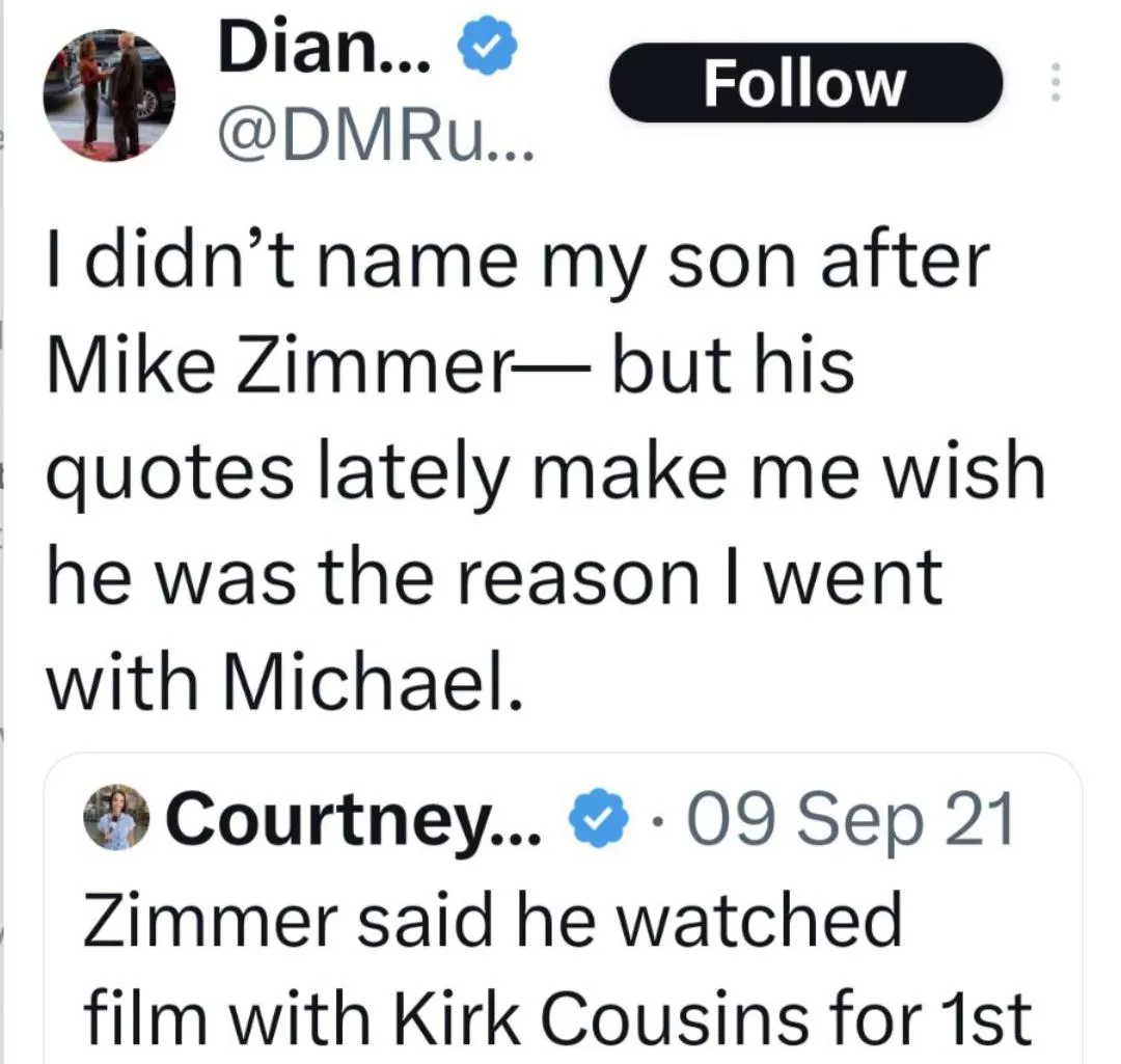"I didn't name my son after Mike Zimmer- but his quotes lately make me wish he was the reason I went with Michael."