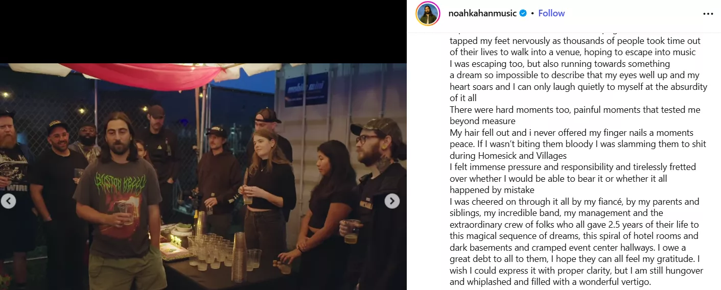 In the documentary, Noah Kahan: Out of Body, Brenna Nolan revealed that she "always had a feeling" and "never doubted" her husband, Noah Kahan, about his ability to turn music into a career. She has supported the singer's career, joining him at the Grammys and attending his shows. It was October 2024 when Kahan celebrated the end of his Stick Season era with a post of gratitude, thanking his loved ones, including his then-fiancée, Brenna. The post could be read as:
