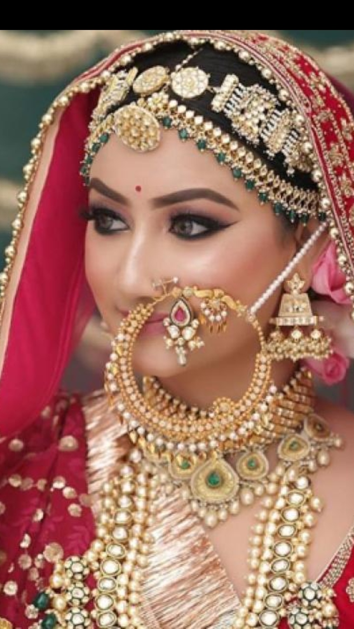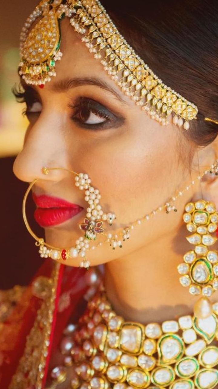 A oversized-beaded 'nath' is something which can best go with heavily embellished jewellery. Why? It balances the entire look and the bride can also flaunt her makeup.