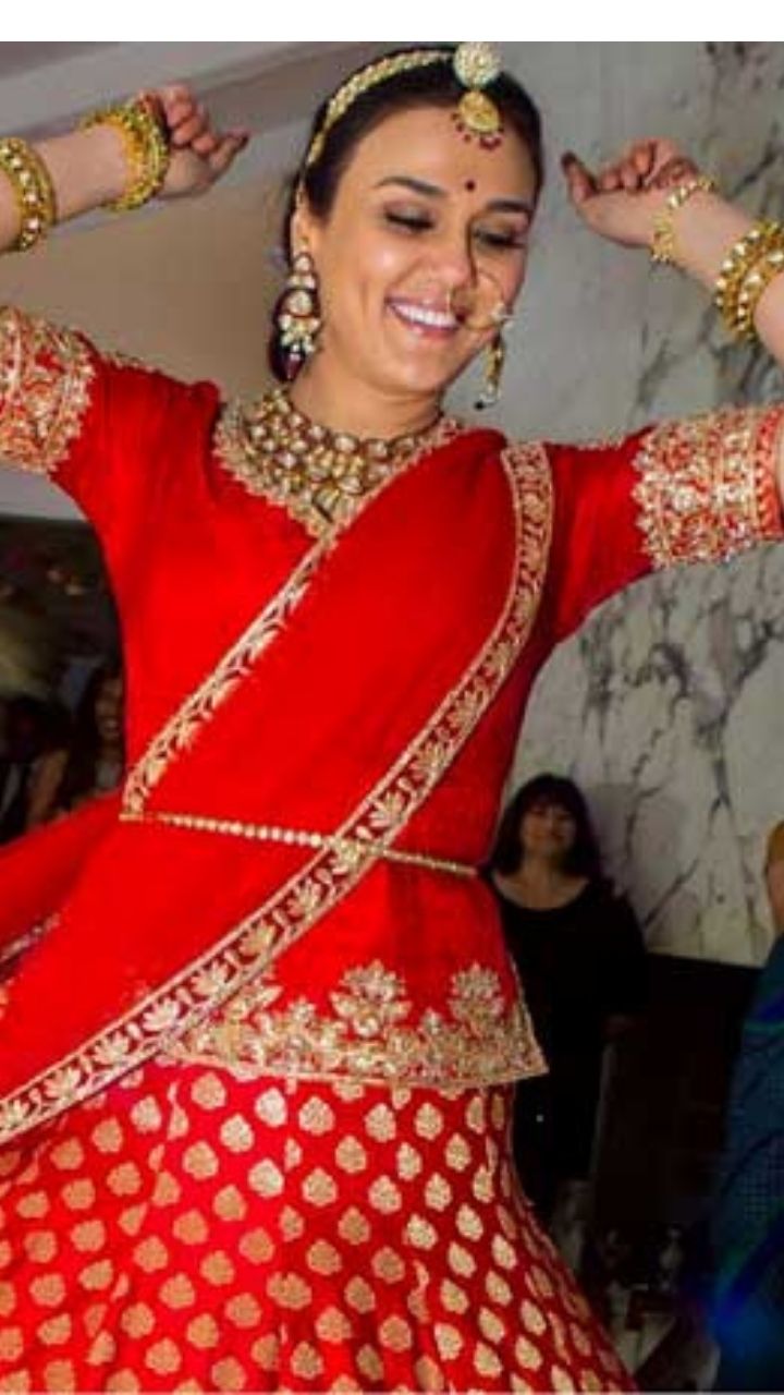 Preity Zinta had looked royal in a gold 'sheesh patti' styled 'maang teeka' that was decorated with ruby stones. She had paired a striking jewellery set with it.