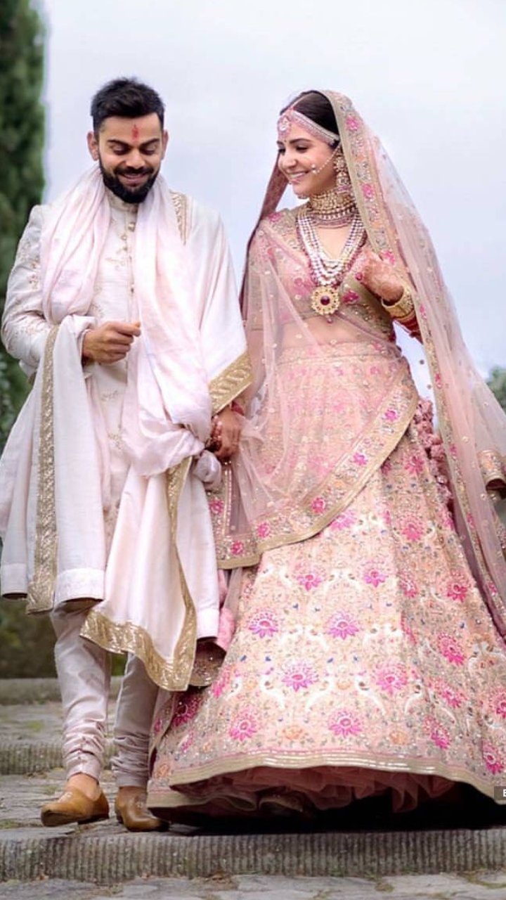 Mira had flauned her powder pink lehenga which had featured heavily detailed work done and dull gold embellishment. Her stunning outfit was from the shelves of designer, Anamika Khanna.