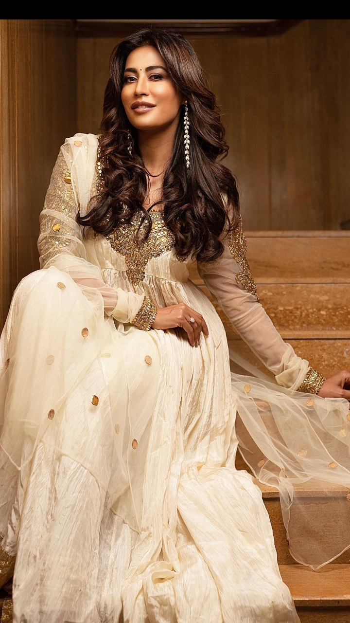 Chitrangda grabbed our eyeballs in a cream-coloured Anarkali set which features golden 'gota' works all over it. She teamed her outfit with glowy makeup and kept her tresses open.