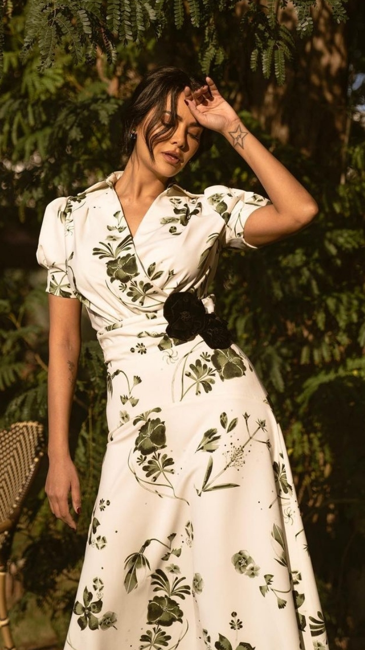 Esha looked stunning in a white-hued floral-printed dress featuring flower cut, collar neckline and puffed sleeves. She amped her look with dewy makeup and a low ponytail.