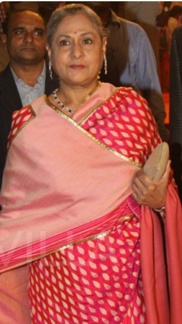 This gorgeous pink and golden 'buti' saree is one of the Jaya Bachchan's favourites. But it seemed like she doesn't mind sharing the six-yard piece with her 'bahu rani'.