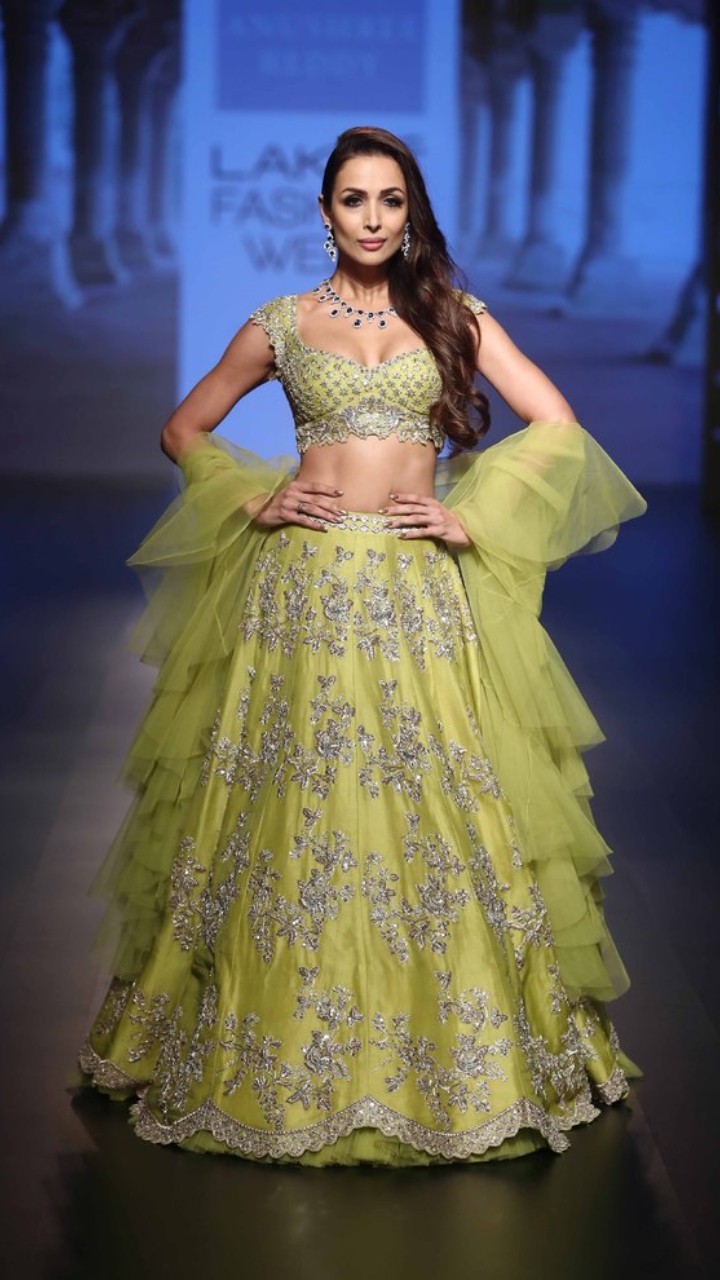 Malaika Arora had looked surreal in a silver grey lehenga paired with a matching blouse. She had completed her look with a 'maang teeka' and open tresses.