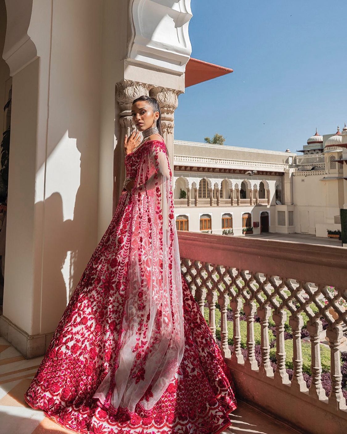 The bride opted for a heavily adorned, 'chikankari' work lehenga in ombre pink. She completed her look with heritage jewellery.
