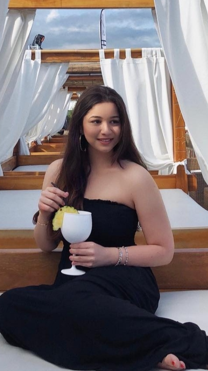 For her vacation look, Sara Tendulkar opted for a black-coloured strapless jumpsuit. Hoop earrings, minimal makeup and open tresses complemented her look.