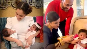 Ankita Lokhande Feeds Vicky Jain's Nephew And Niece, Abeer And Abeera On Their 'Annaprashan'