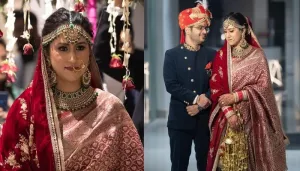 Falguni Shane Peacock Bride Wore A 3D Magenta 'Lehenga', Flaunted Smokey Eyes On Her Wedding