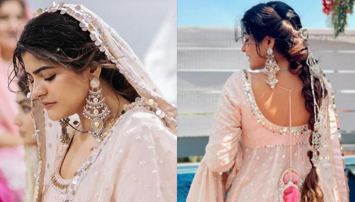 Bride Wore A Pastel Pink-Coloured Lehenga For The D-Day, Paired It With Leaf Motif Bunch 'Kaleera'