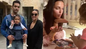 Neha Dhupia's Daughter, Mehr Crashes Into Her Photoshoot Session, Mommy Tries To Cover Her Face