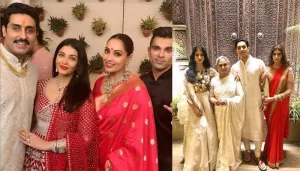 Aishwarya Rai Bachchan Stuns In A Red Anarkali With Intricate Embroidery, Shares Cute Family Picture
