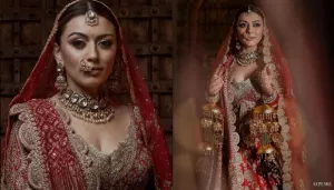 Beauty Blogger Bride Wore A Scarlet Red 'Kalidar' Lehenga With Customised Long Veil