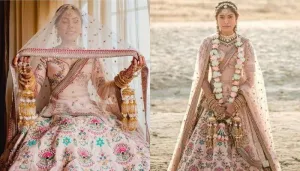 A Designer Bride Wore A Pink Sabysachi 'Lehenga' With Rajasthani Jewellery For Her Beach Wedding